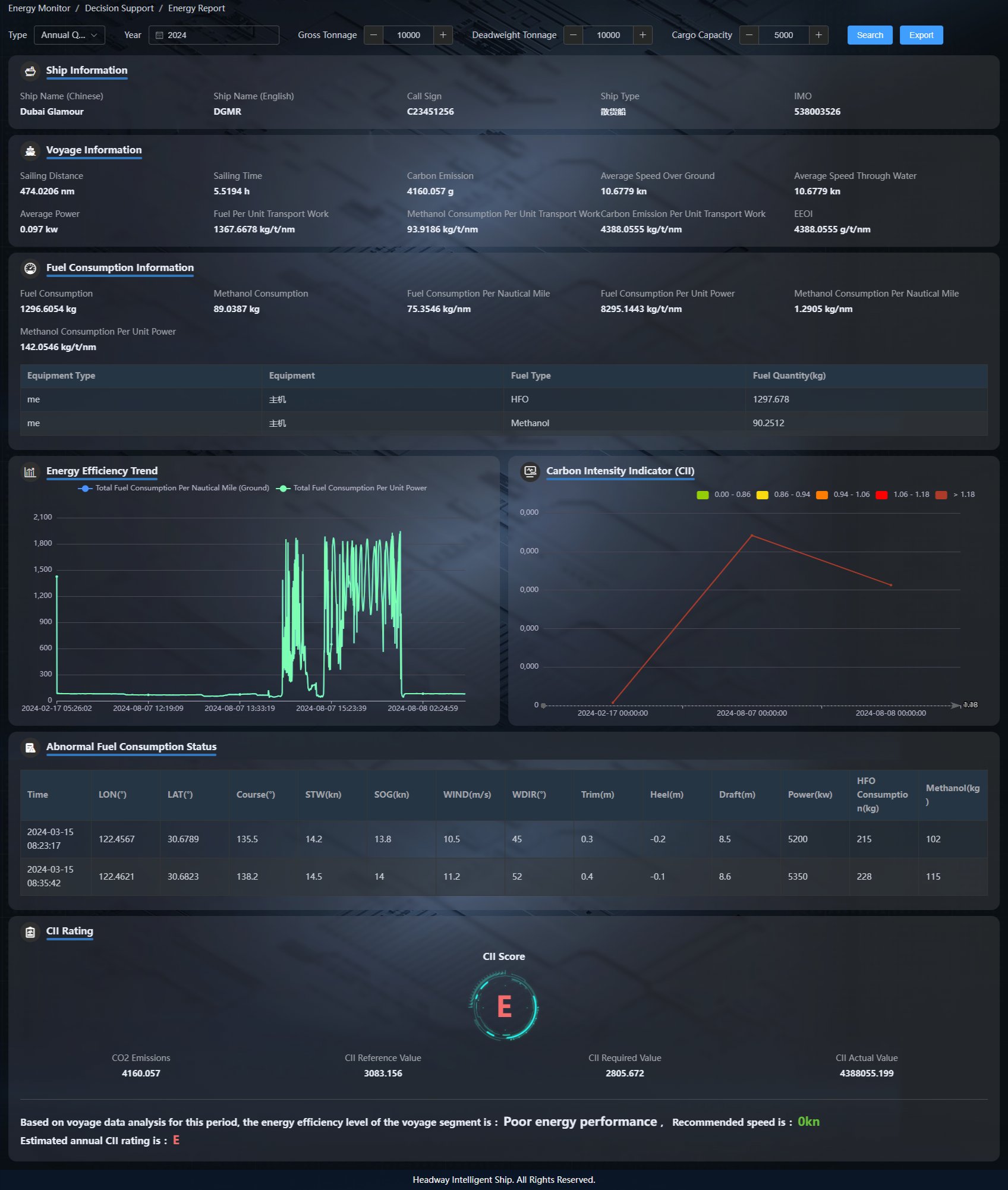 基于智能信息集成平臺,實時監(jiān)測船舶航行各個關(guān)鍵指標(biāo),運用現(xiàn)代化船舶能效管理的系統(tǒng)性方法,對船舶能源消耗、能源利用效率和二氧化碳排放進(jìn)行嚴(yán)格的控制和管理,提高船舶能效,減少設(shè)備自身或人為因素造成的額外消耗,實現(xiàn)船舶節(jié)能減排的能效要求,推動航運綠色發(fā)展。